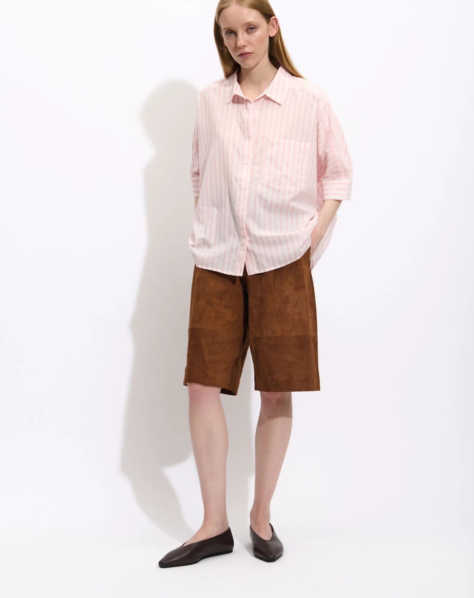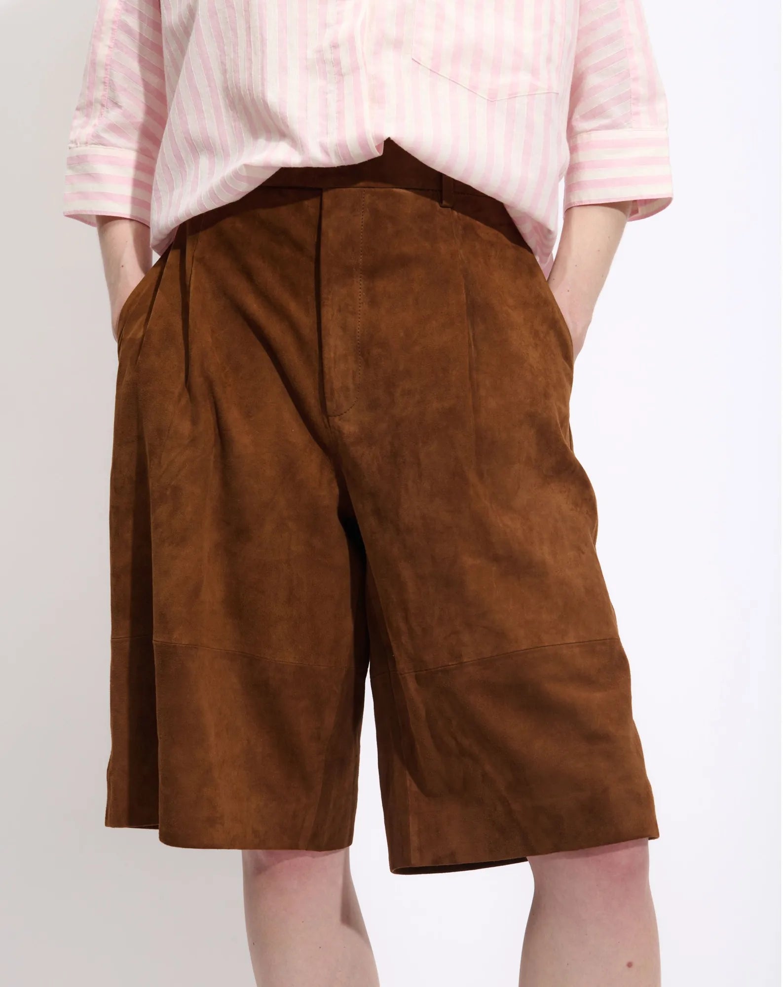 - - Bermuda en daim - Pinces sur le devant - Détails de découpes - Poches italiennes