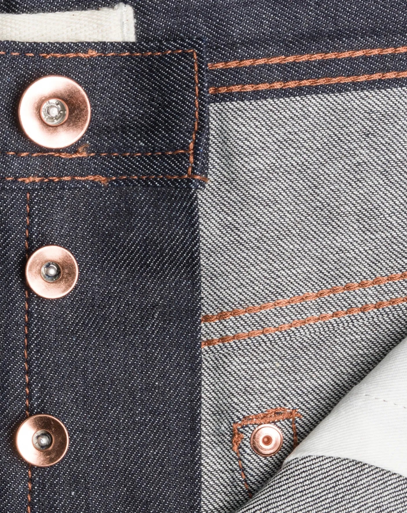 The UB222 is our tapered fit: roomy seat and thigh tapering to a narrow leg opening cut and sewn from 11oz raw indigo selvedge denim with a touch of stretch. Raw denim is famous for being uncomfortable when new, requiring a break-in period, but we made this fabric from an easy-to-wear 11oz standard weight fabric with 1% stretch for added comfort. With wear, the rope-dyed indigo exterior yarns will fade to reveal their white cores. Signature blue ear selvedge ID. Unbranded leather patch. Union Special chain-stitched hems. Hidden back pocket rivets. Copper tin button fly.
