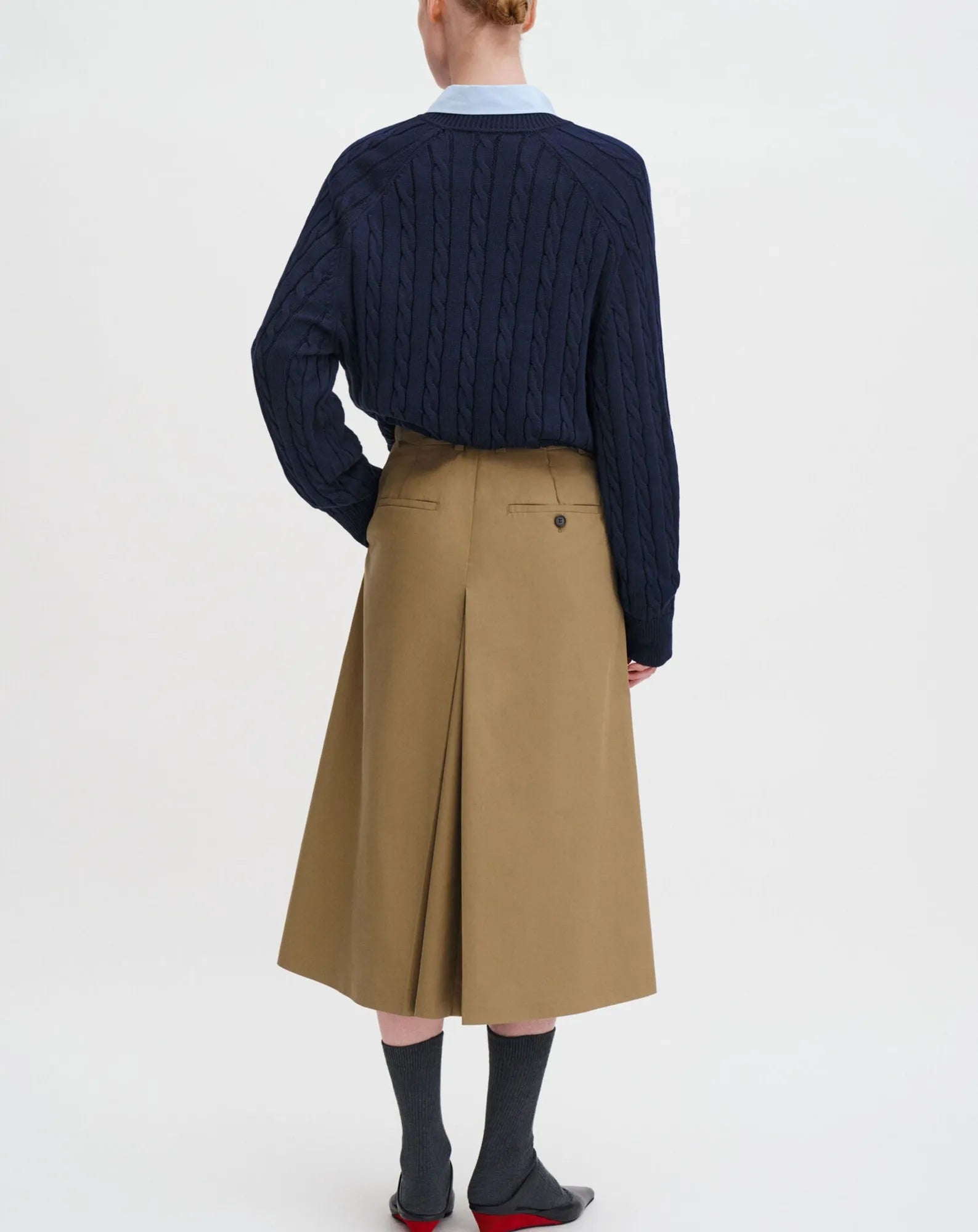 Box Pleat Long Skirt Organic Cotton - Camel