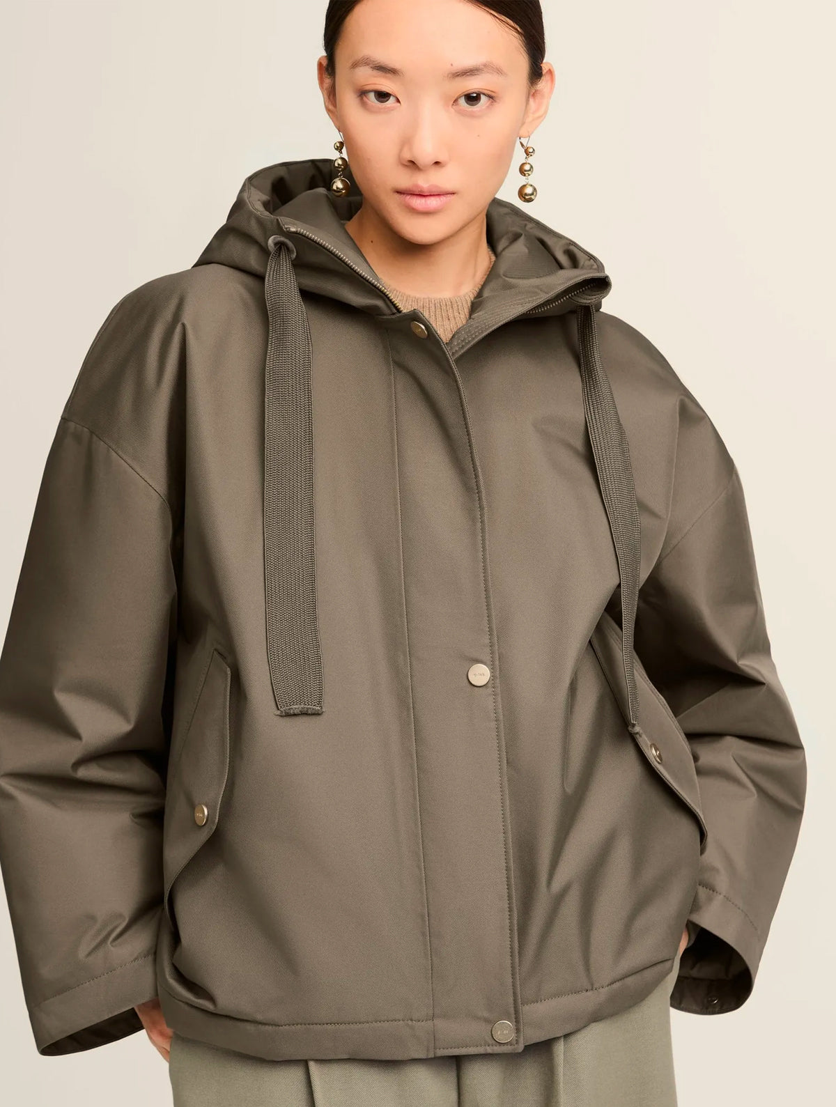 For those looking for a timeless, feminine jacket for autumn and winter: the hip-length jacket AMBER features a light A-line silhouette and comes in an elegantly shiny twill fabric that, combined with its cozy and warm padding, protects you from wind and weather. A timeless jacket for everyday wear.
