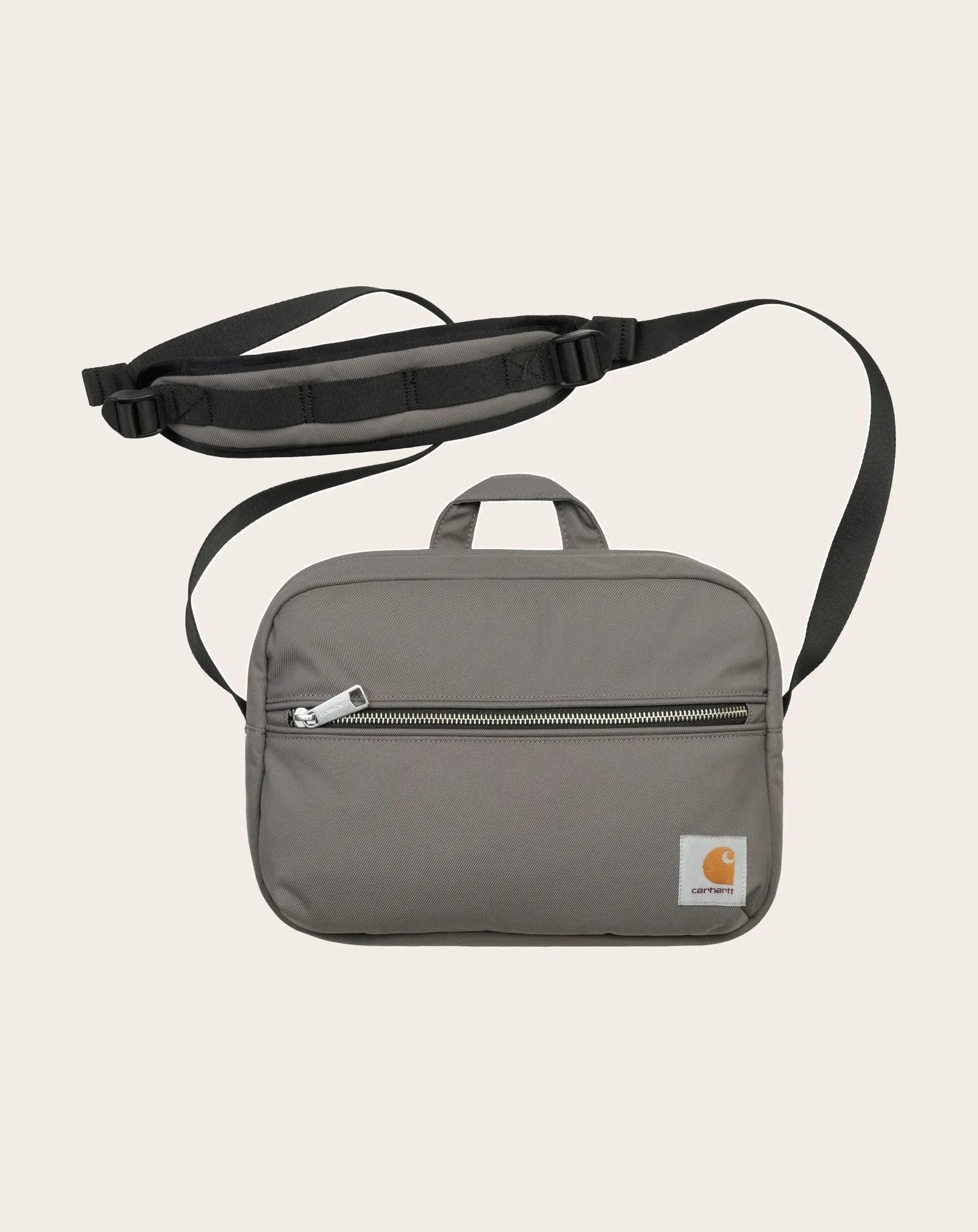 The 'Leroy' bag is made of semi-thick nylon. Water-repellent, it features a main compartment and zipped front pockets, a handle and an adjustable padded shoulder strap. An interior mesh pocket with key ring and Square Label complete the design.