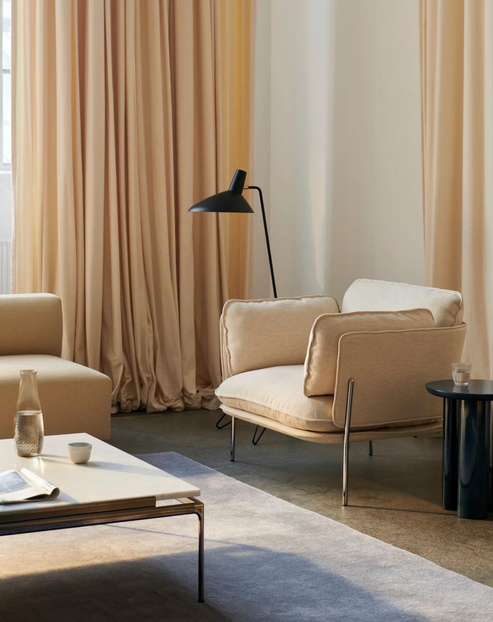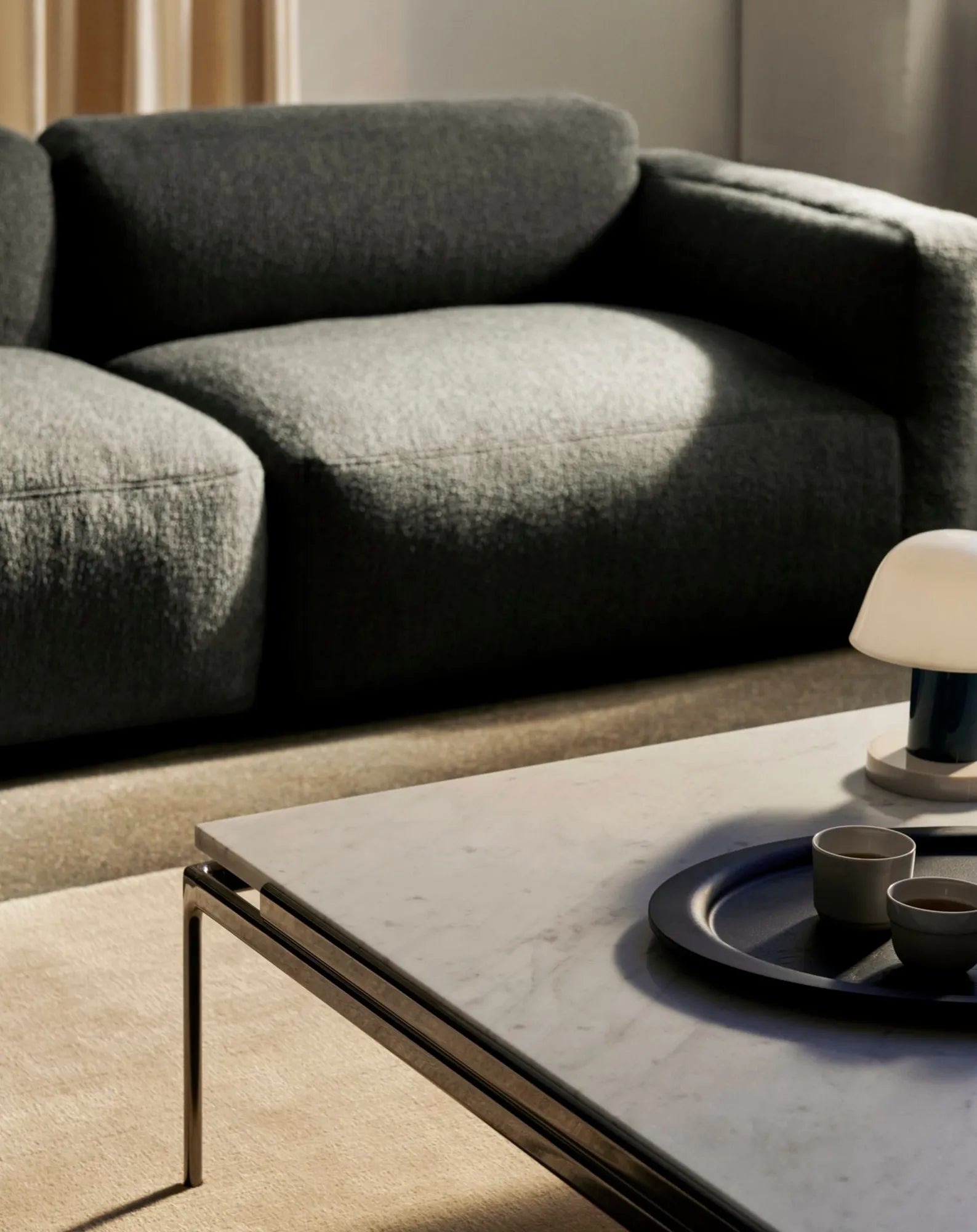 With its soft, oversized proportions, the Tung Side Table plays with contrasts. Designed by contemporary British designer John Astbury, it translates large, heavy elements into a light expression. Its three curved legs recall the imposing presence of ancient pillars, while the glossy, light-reflecting surface evokes a sense of ephemerality. Made of lacquered MDF, Tung is available in dark red or steel blue.