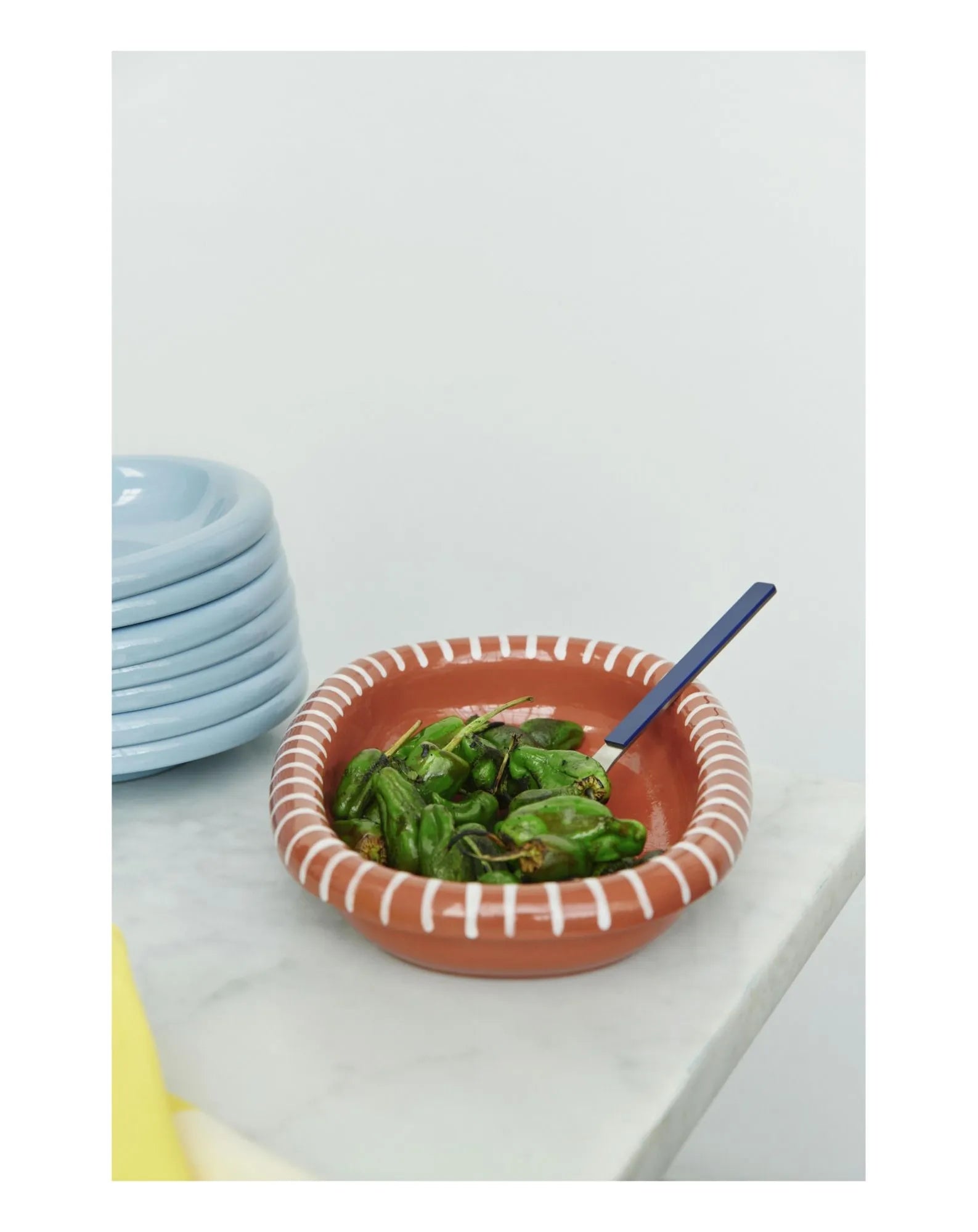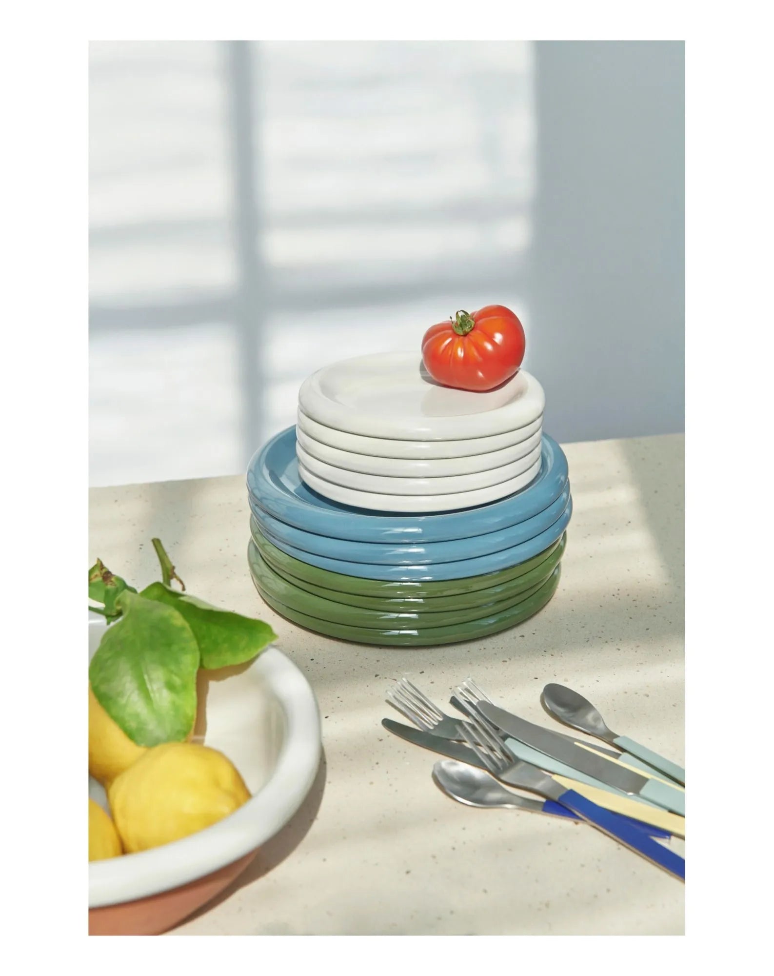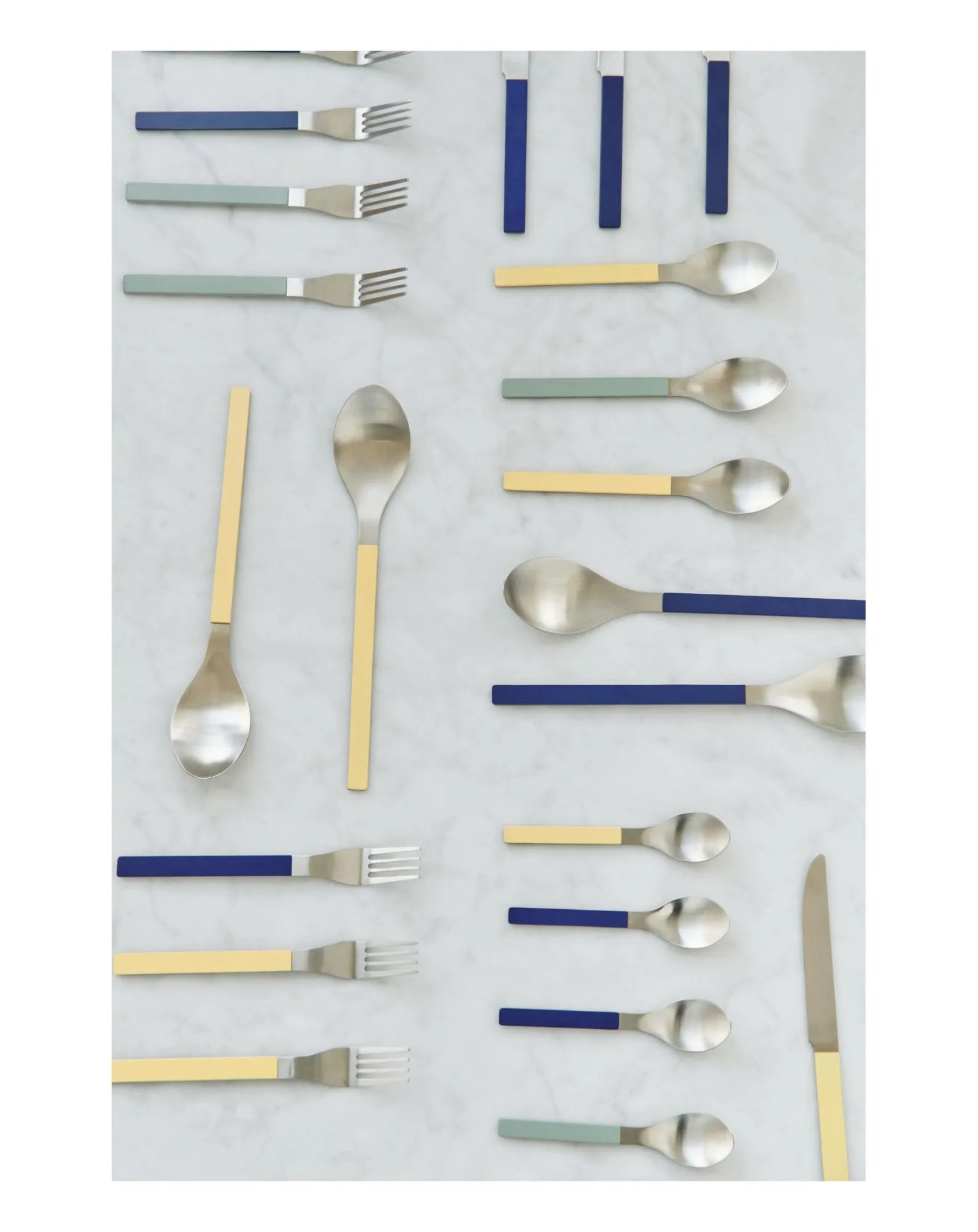 This cutlery designed for HAY by Muller Van Severen embodies a subtle fusion of aesthetic minimalism and delicate use of color. Their brushed stainless steel construction, accompanied by painted handles, offers a touch of refinement. These versatile pieces can be arranged in matching or contrasting colors, giving the table an undeniable elegance and originality.
