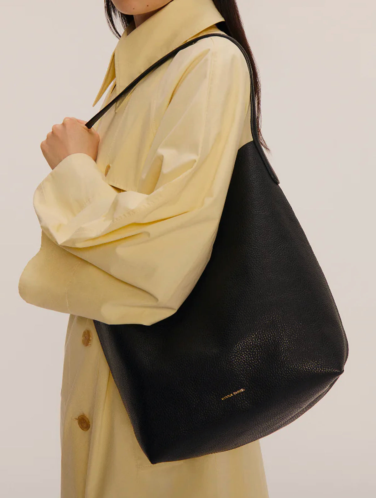Our iconic Cabas silhouette, reimagined as a bucket bag. This updated shape is perfectly slouchy and features sleek elongated handles, a magnetic closure, an interior pocket, and is spacious enough for MacBook Pro 14.