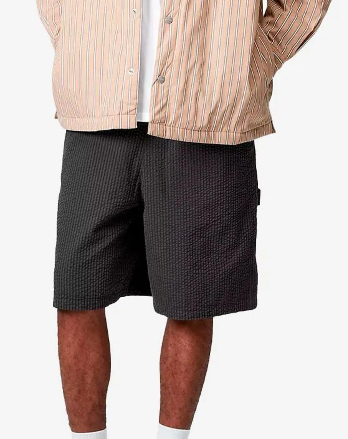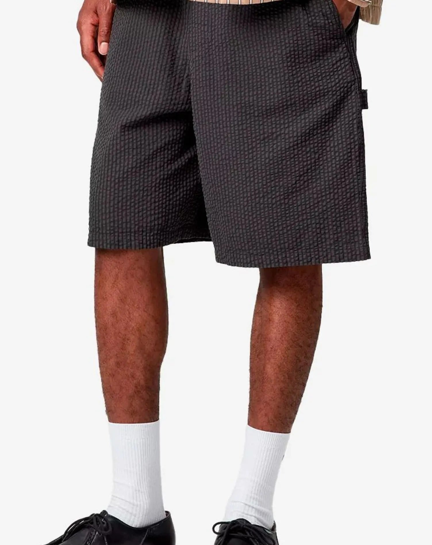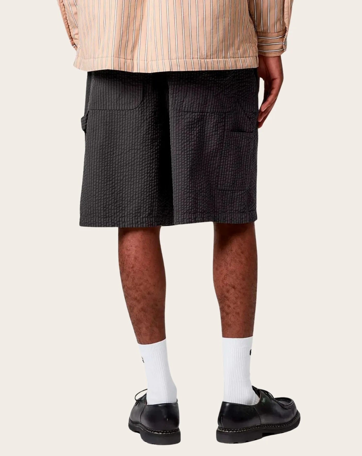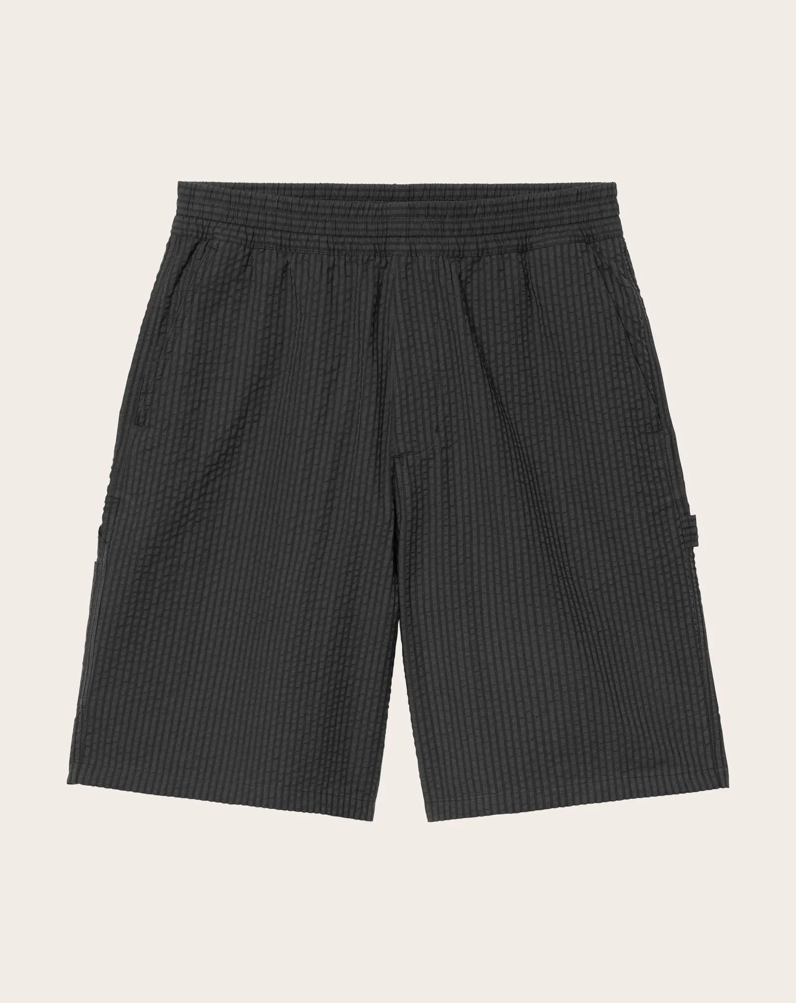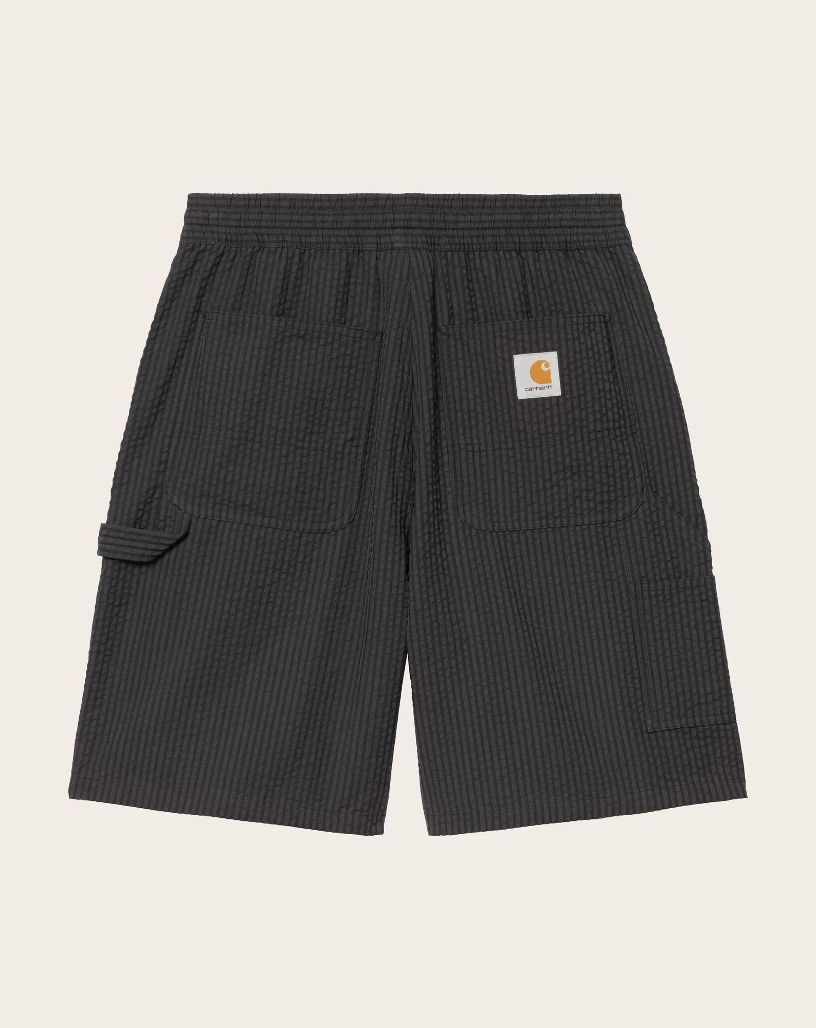 The 'Toland' shorts are made from lightweight seersucker cotton. Regular fit, adjustable waist with drawcord. Workwear-inspired details include tool pockets and hammer loop. Bartack stitching provides extra support. The Square Label is sewn on the back.