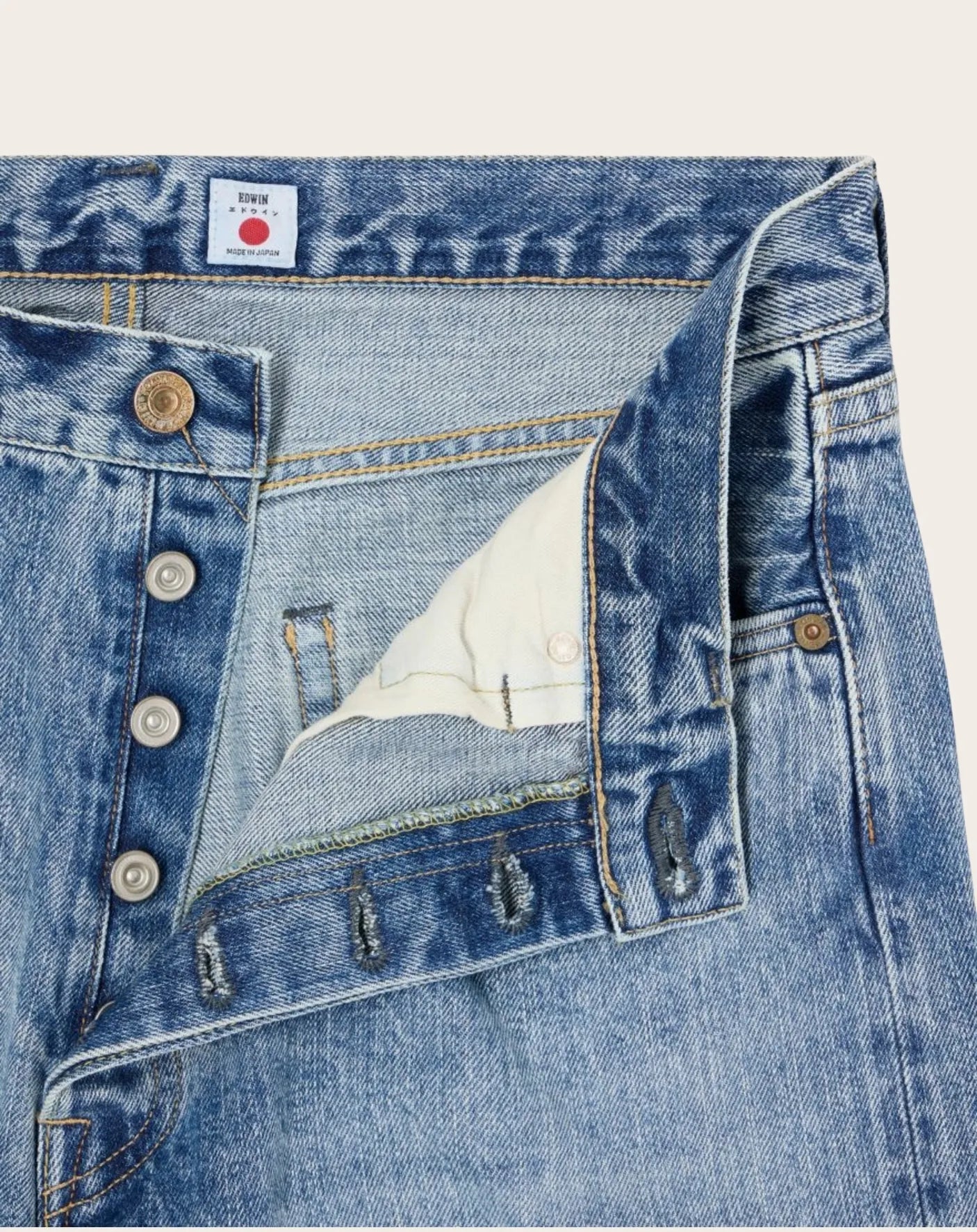 In order to highlight the indigo color of the warp thread, we reviewed the denim structure and selected a thinner thread for the weft thread. In addition, we reduced the disadvantages of rigid (unwashed) denim by applying a process that minimizes shrinkage after washing.