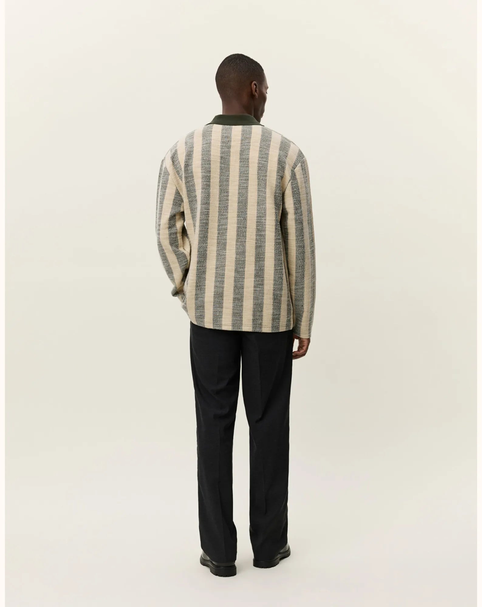By using black threads for the warp and weft, we have created a darker, deeper black denim. By using thinner weft threads and finishing them with a rigid (unwashed) finish, we have achieved a sophisticated texture. In addition, the fabric has been processed to minimize shrinkage after washing, reducing the disadvantages of being rigid (unwashed).