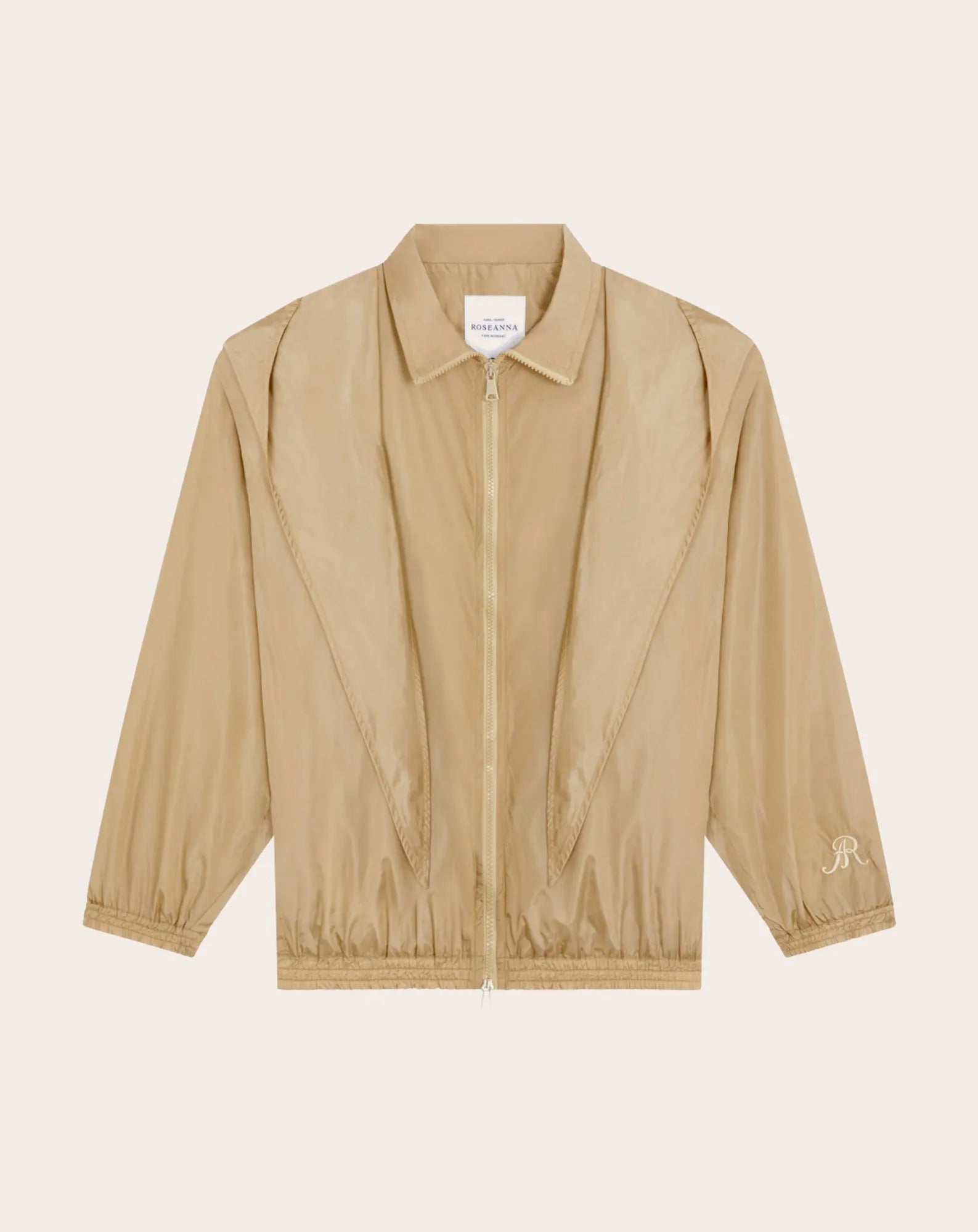 Water-repellent jacket Roseanna, model RAIN, color Beige. A zipped jacket with stand-up collar, straight cut, elasticated waist and cuffs, removable hood and front patch pockets. This theme features a water-repellent material in a cut that blends originality and sobriety, designed for everyday use. Lightweight, functional and available in three sizes, it combines practicality and style. Zipped jacket with stand-up collar Straight cut Elasticated waist and cuffs Front patch pockets Removable hood Made in Bulgaria.