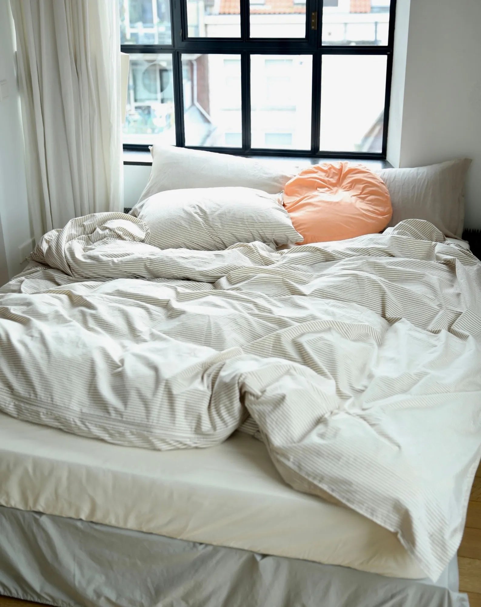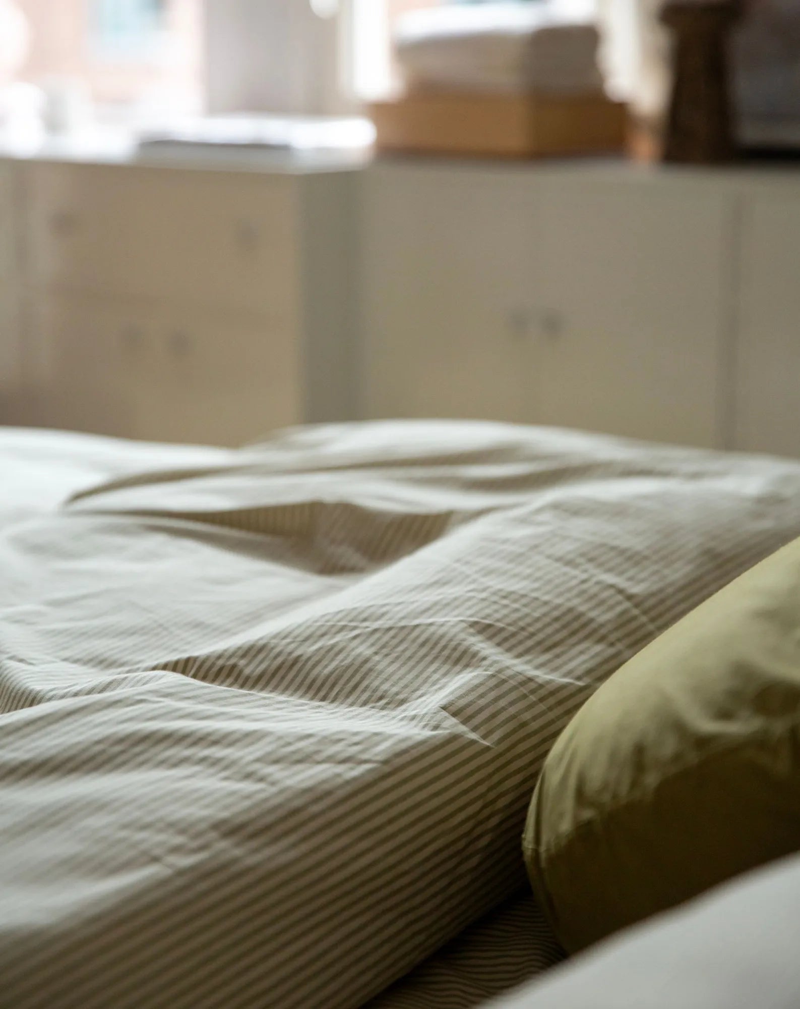 Striped comforter cover in organic percale - Olive-Ecru - Olive