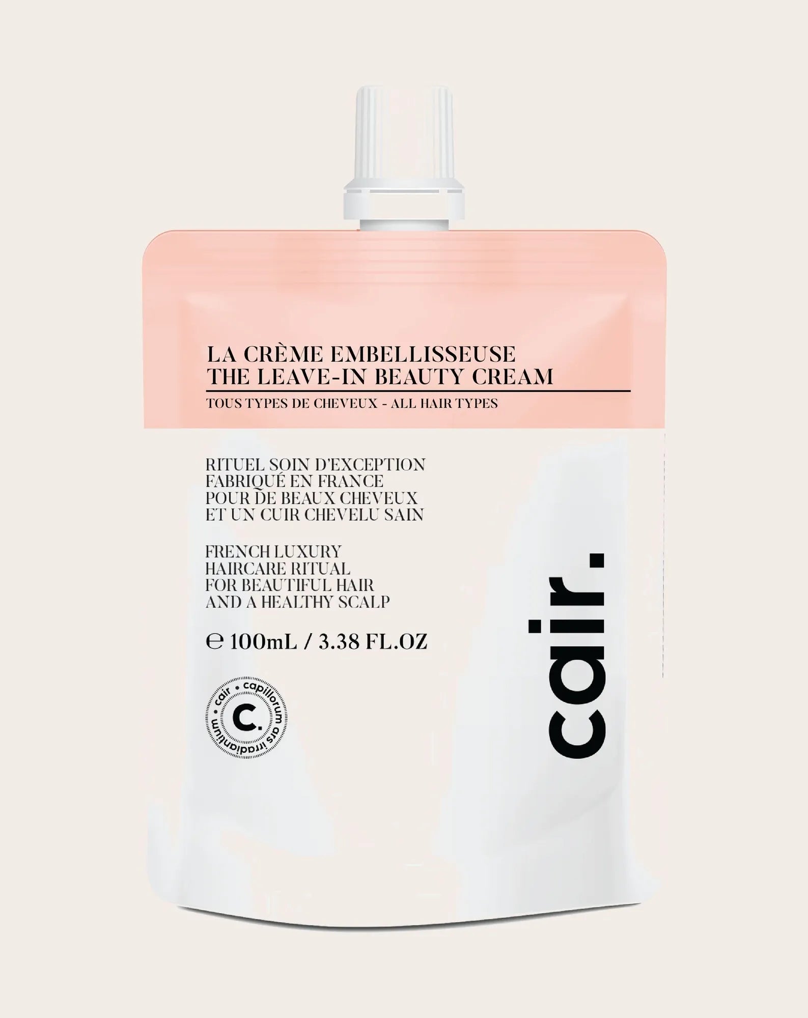 A no-rinse hair moisturizer available in a practical, long-lasting refillable format. Designed to reduce waste, not care effectiveness, Cair Crème Embellisseuse is available in a refillable version. A genuine day cream for your hair, it nourishes, disciplines and protects the fiber on a daily basis.
