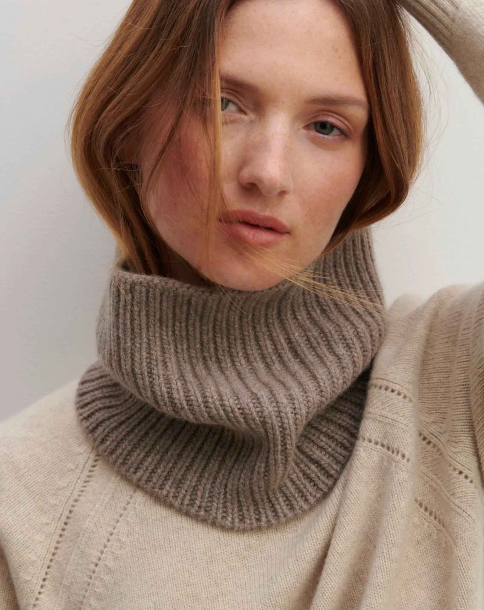 This cozy choker, which combines functionality and style, protects against the cold thanks to its generous 12-thread cashmere knit. Its ribbed knit adds a touch of authenticity to the silhouette - Unisex choker - Ribbed knit