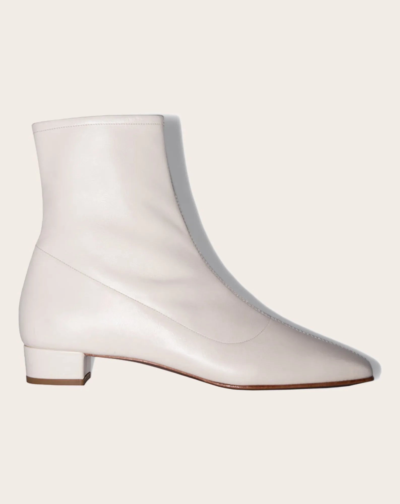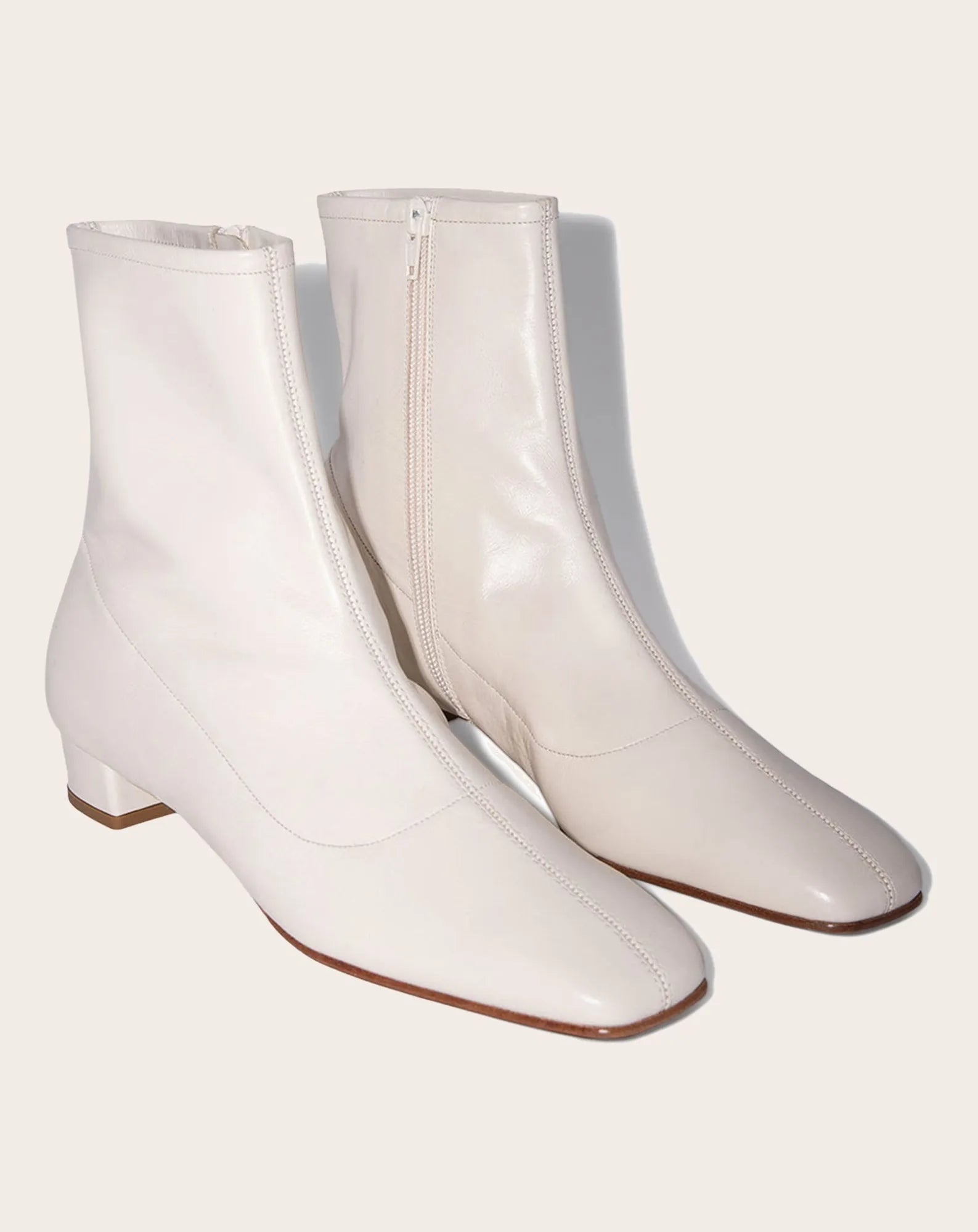 - Bottines en cuir nappa à la forme d'un gant et au talon bloc de 3 cm recouvert de cuir. Elles sont dotées d'une fermeture éclair latérale interne, d'une couture centrale délicate et d'un bout arrondi. Fabriquées en cuir certifié LWG.