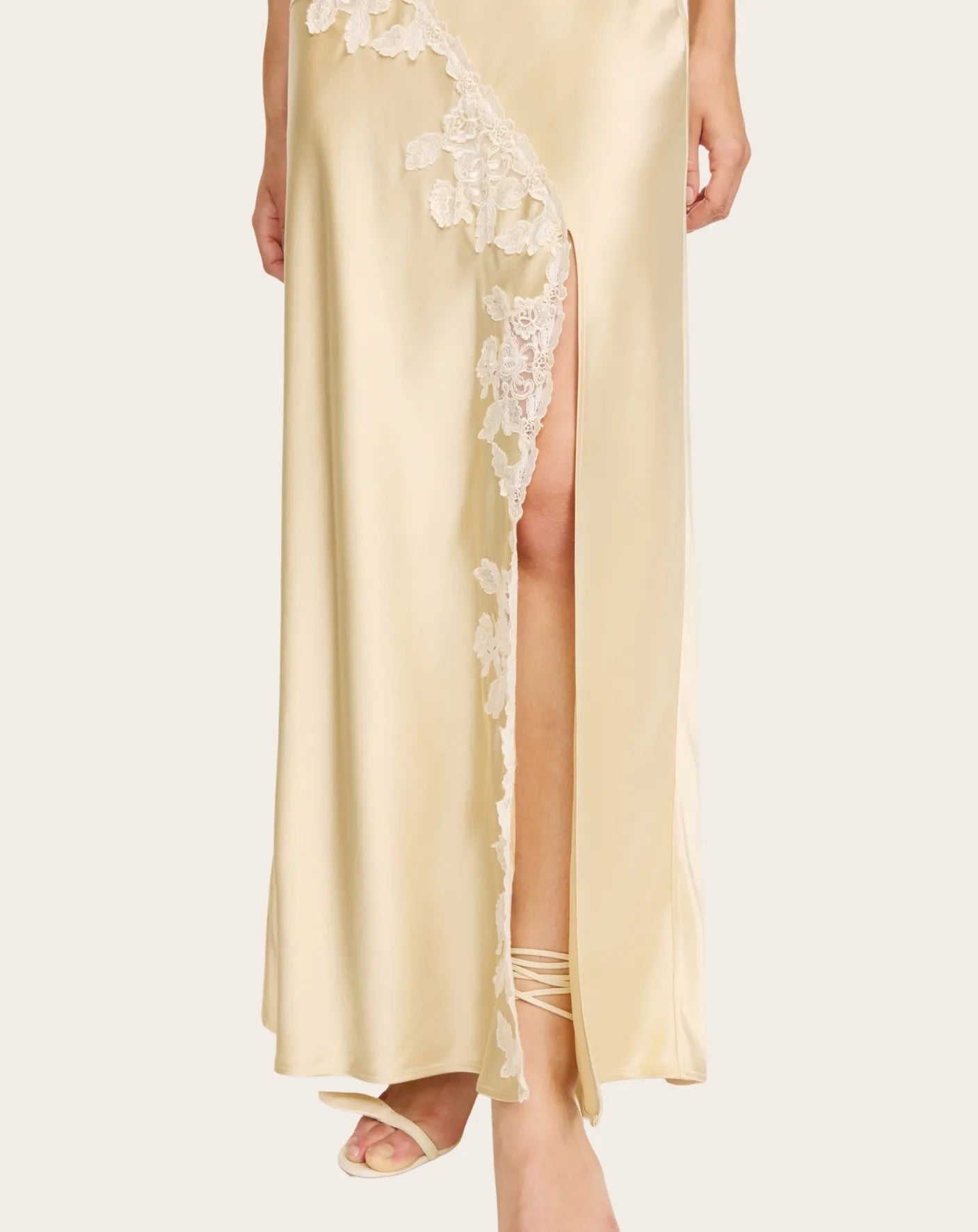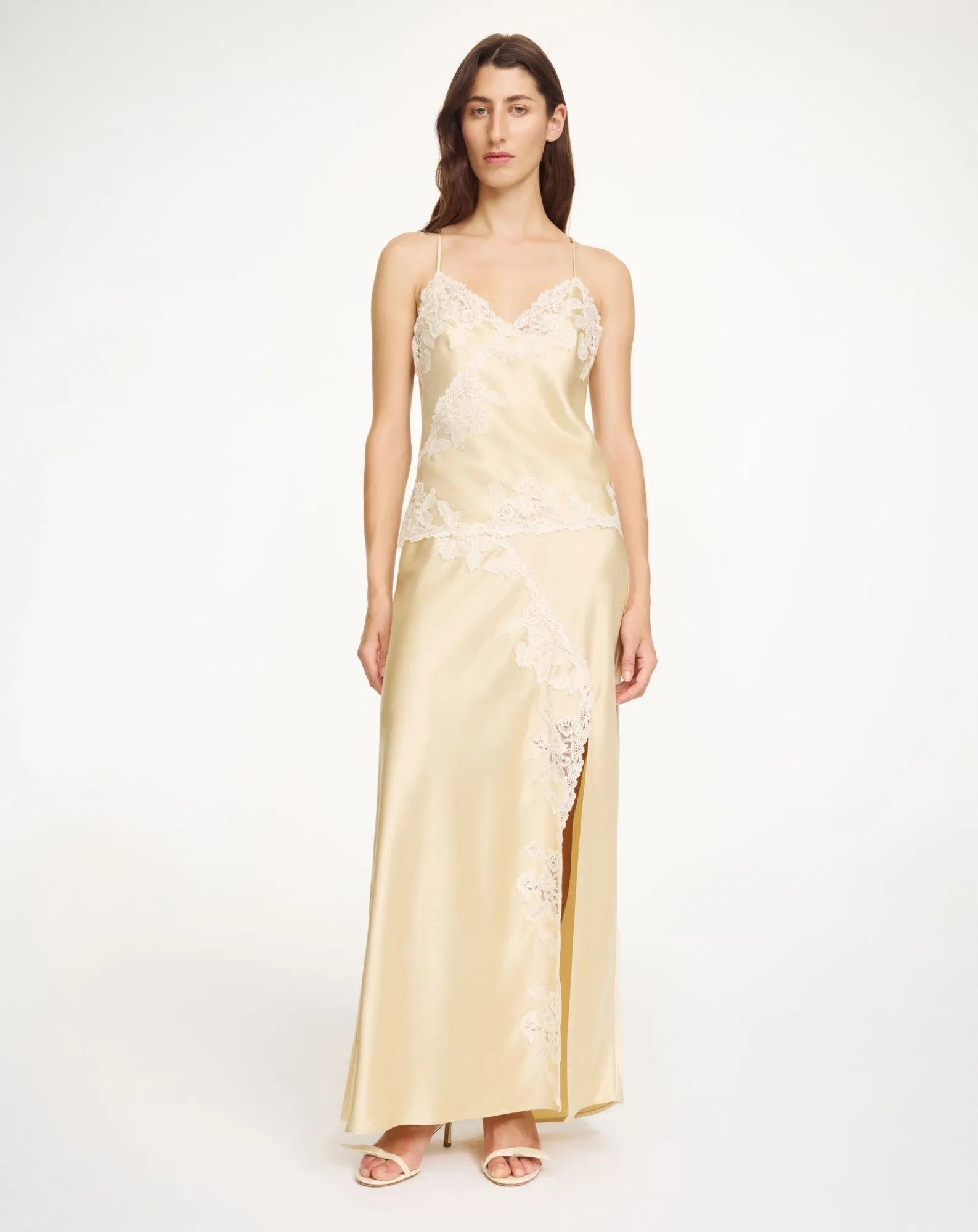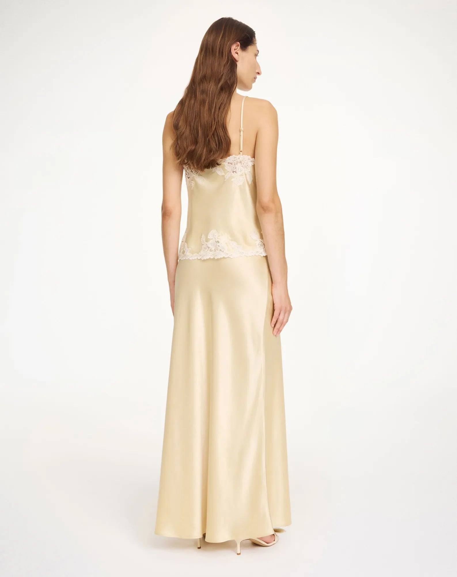 - Ajoutez une touche romantique à votre garde-robe de printemps et d'été grâce à la jupe longue Erika, qui se distingue par son satin luxueux et ses bordures en dentelle d'inspiration vintage. Habillez-la au quotidien avec un T-shirt minimaliste ou portez-la avec le top Madeleine assorti pour les soirées de la saison.