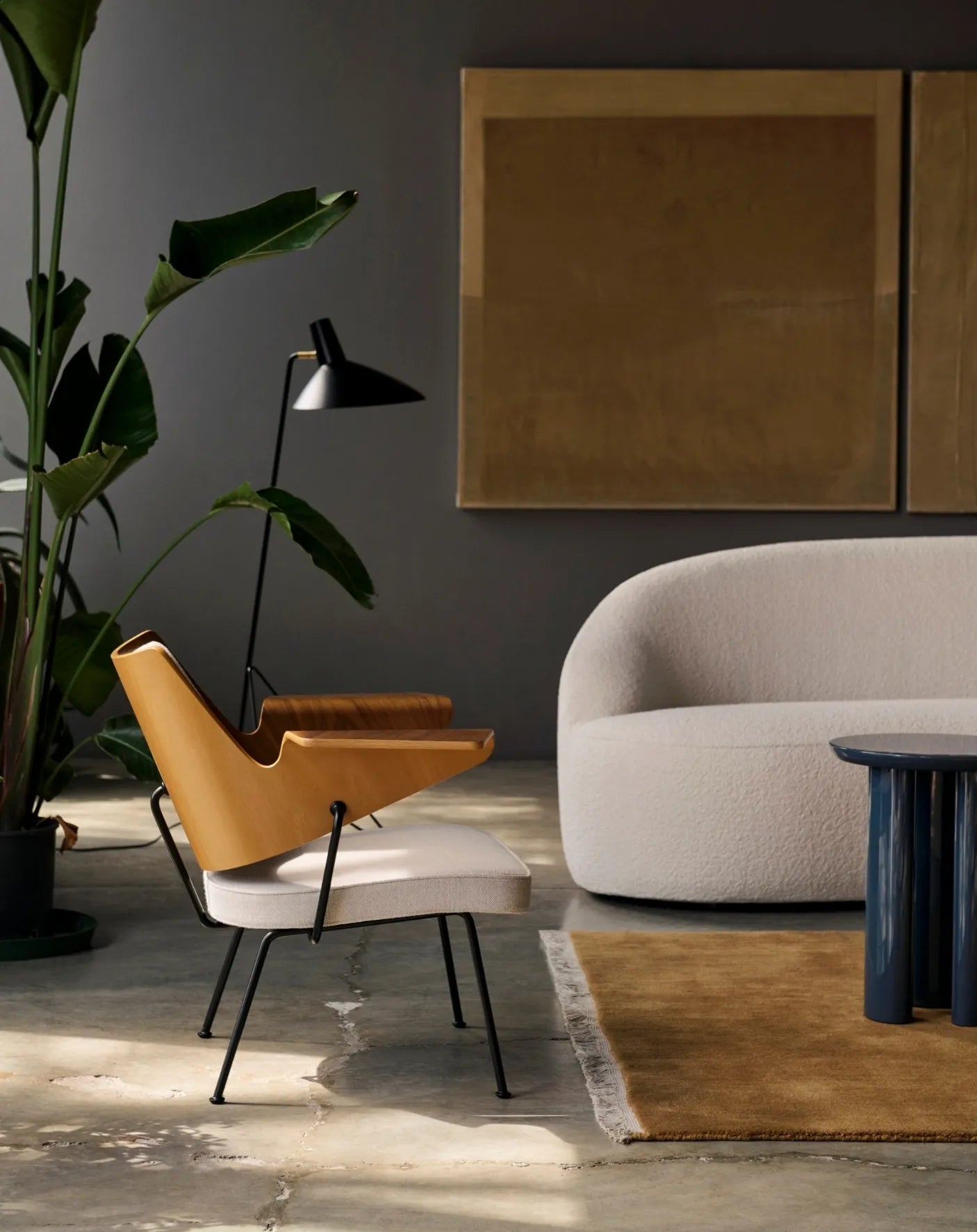 - Conçu en acier laqué, le lampadaire Tripod trouve un équilibre délicat entre la simplicité de sa forme et la douceur de ses arêtes incurvées. Pour faciliter l'articulation et obtenir une lumière plus précise, une articulation pivotante a été développée - une caractéristique que l'on retrouve dans toute la gamme Tripod.