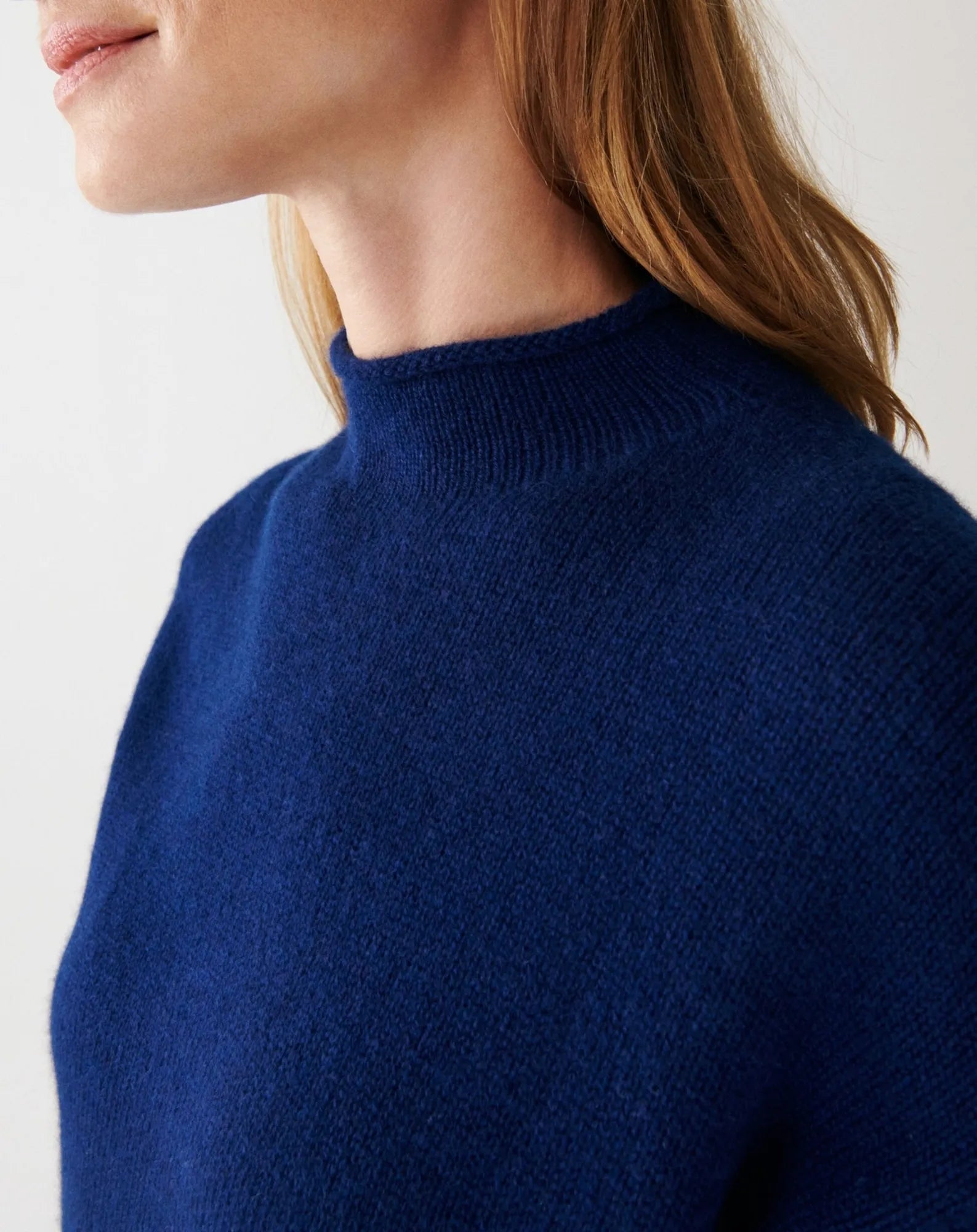 Pull Col Montant Ample Cachemire - Bleu marine